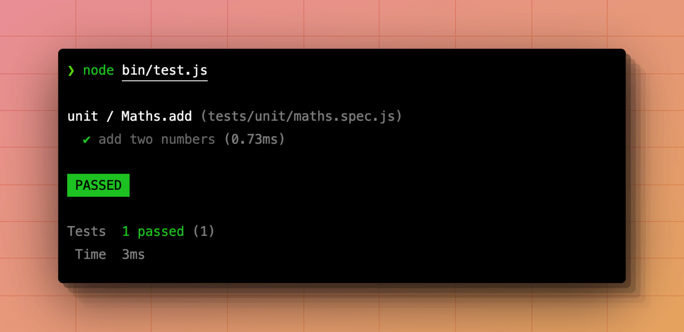 You can run tests by executing the entry point file. Assuming you are writing tests inside a JavaScript project, you can run tests as follows.