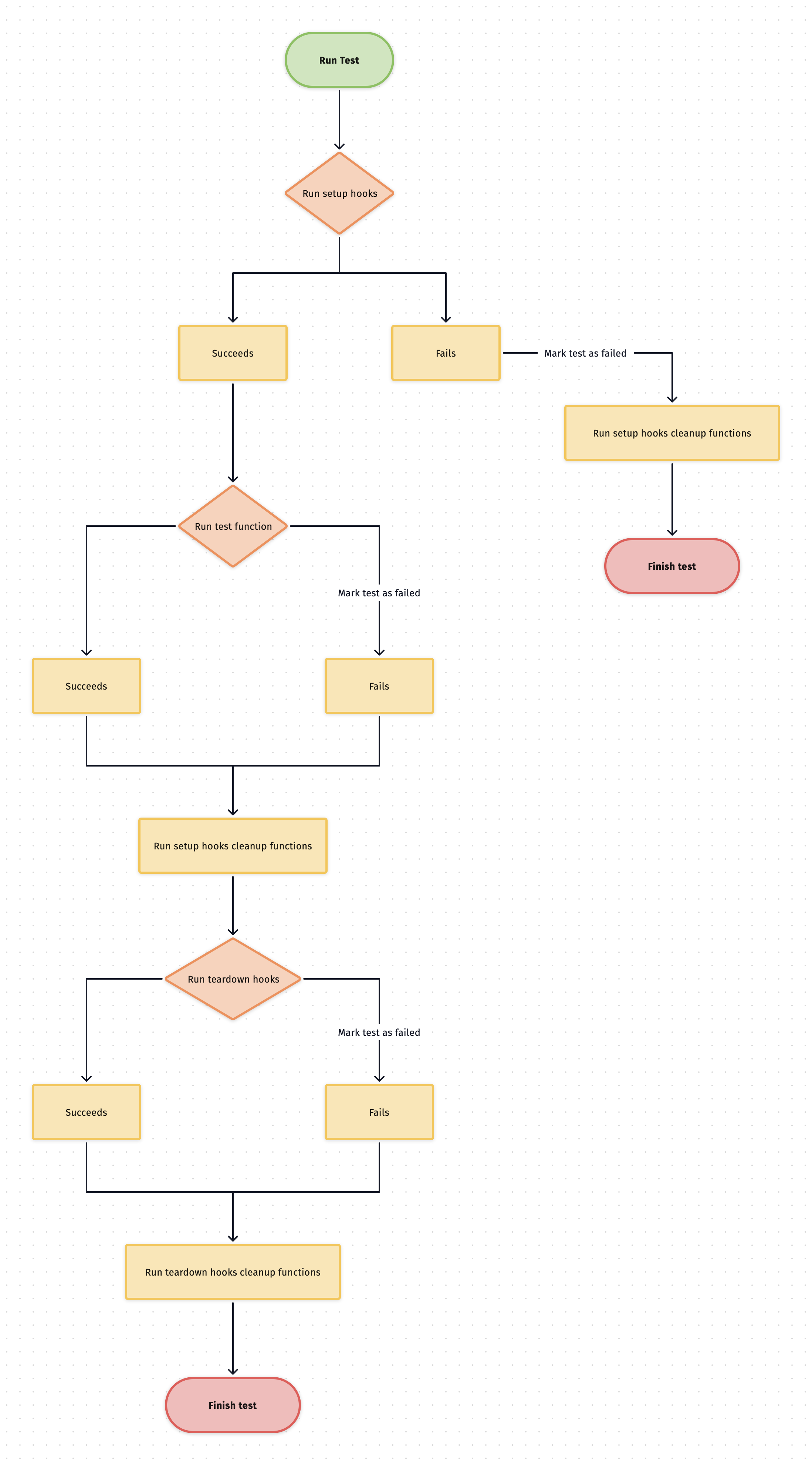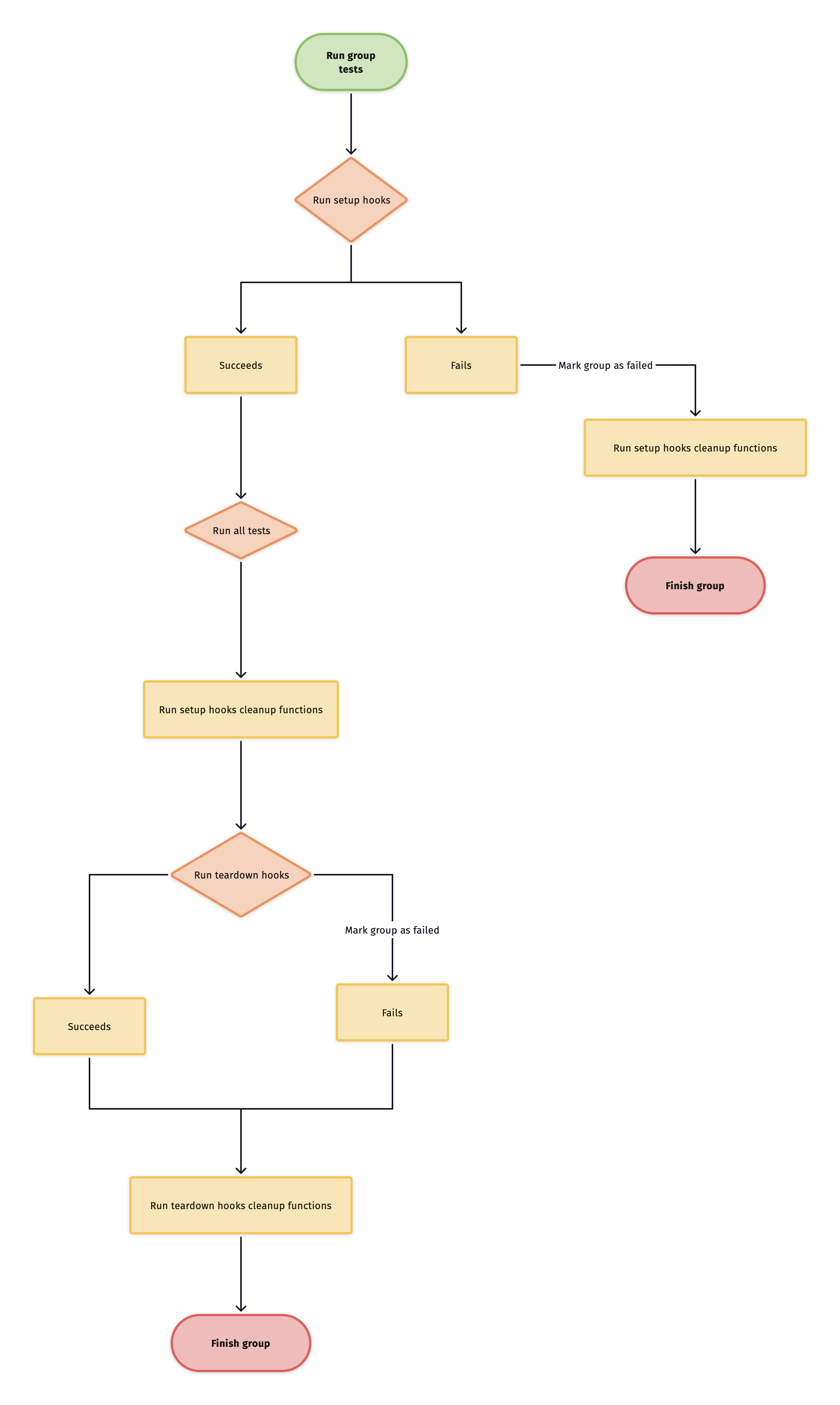 Similar to tests, groups can also have lifecycle hooks. The hooks defined on a group will run before and after all the tests.
