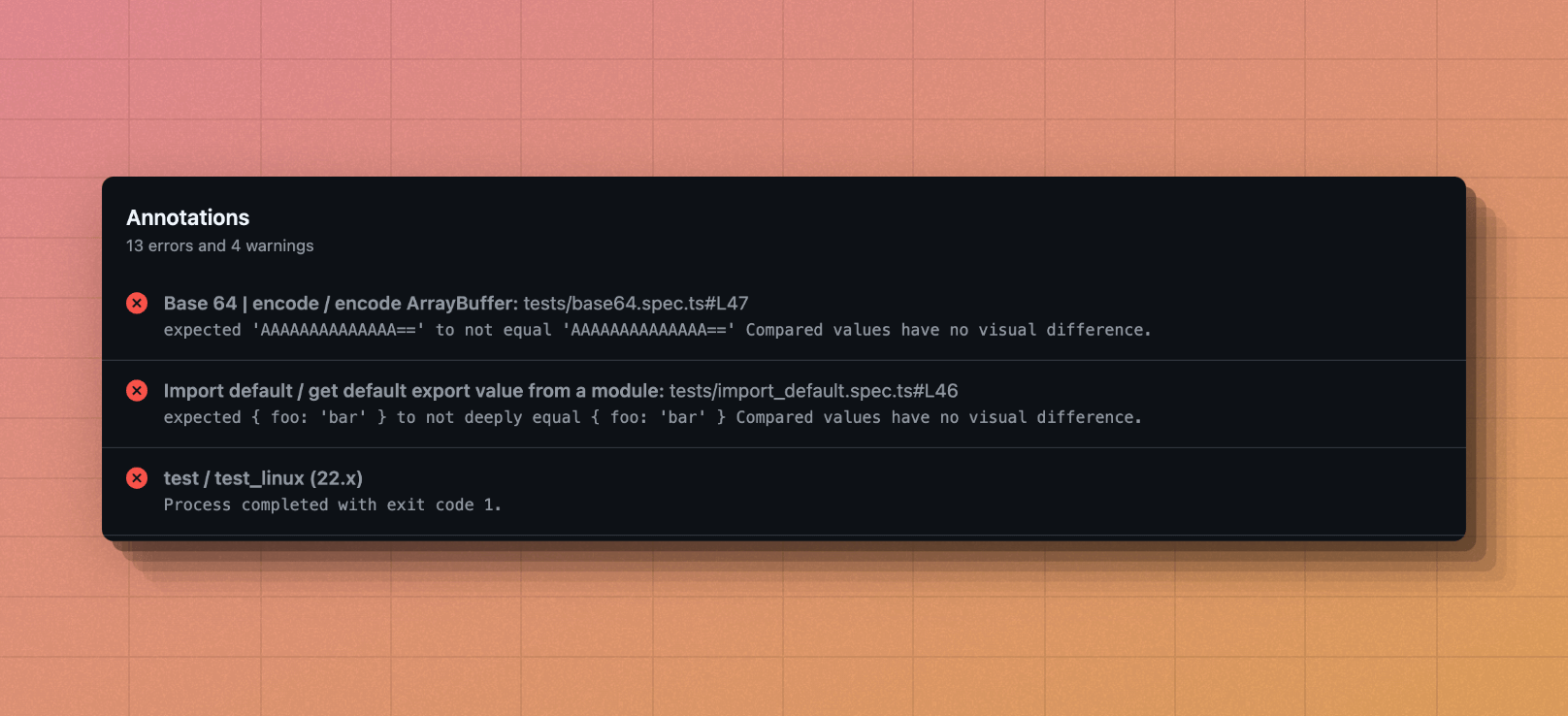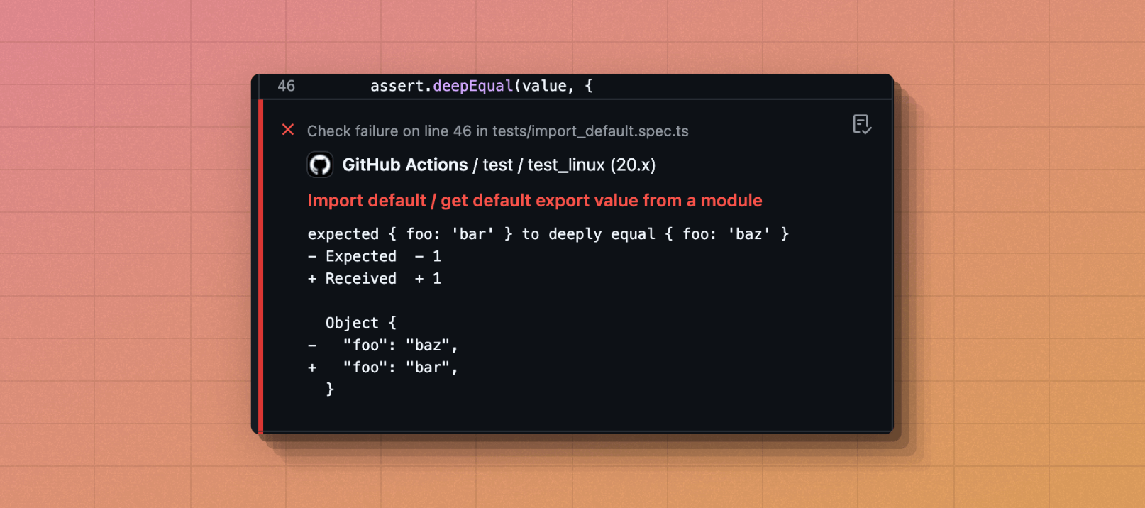The github reporter reports errors as annotations when running tests as part of Github actions.